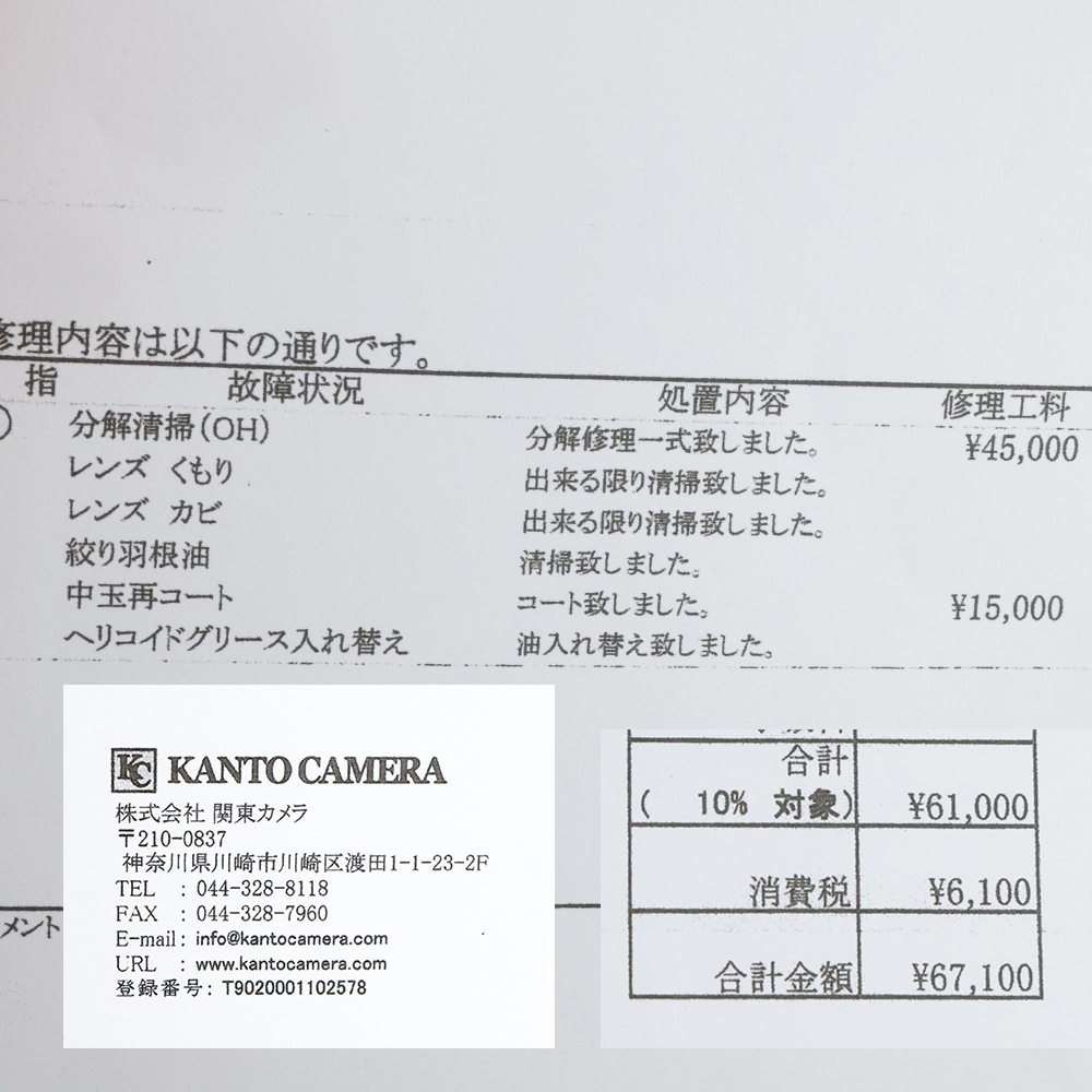 附日本関東カメラ修理單(費用日幣67100.約台幣13800元)