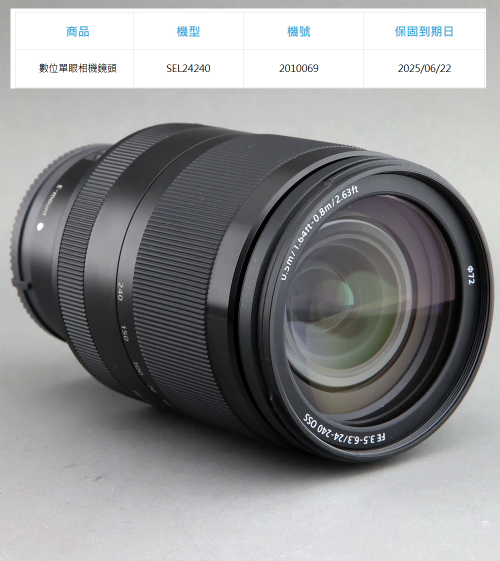●公司貨,盒單完整. 附原廠遮光罩 ●全幅鏡旅遊鏡 ,A7m3 ,A7m4 ,a6400 都可以用 ●鏡片無傷無霉,外觀有使用痕跡沒有碰撞 店保一個月 SONY FE 24-240mm f3.5-6.3 OSS 防手震 全幅 旅遊鏡